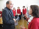 銭太鼓とコーラスで歓迎セレモニー。その後は、お互いの自己紹介や文化交流を行い盛り上がりました。